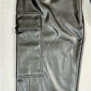 FOREVER 21 Women’s Faux Leather Black Cargo Pants Adjustable Ankle Snaps