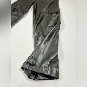FOREVER 21 Women’s Faux Leather Black Cargo Pants Adjustable Ankle Snaps Small