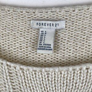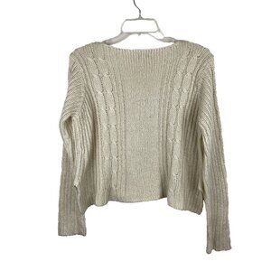 FOREVER 21 Womens Junior Sweater Sz L Cableknit Cropped cozy Cream Large