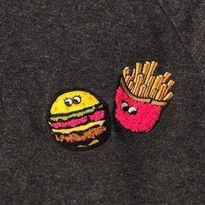 Cute Cheeseburger and fries detail. Color is a very dark gray, almost black.