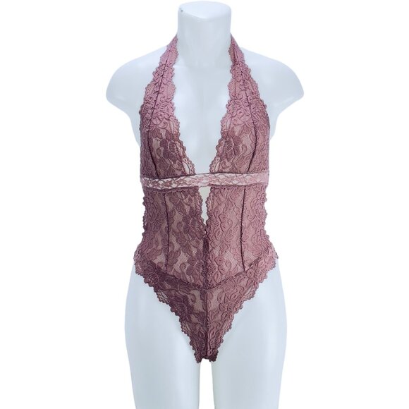 FOREVER 21 Women’s Lingerie Mauve Teddy Brazilian Cut Lace Sheer NWT Size M