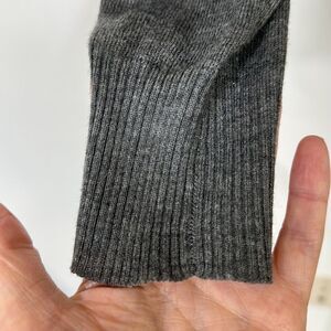 Pull-over style. Crew neckline. Long sleeves. Ribbed cuffs and hemline. Graphic front design. Dark heather gray with white and red lettering. No fabric tag. Lightweight. Stretch material. Fun. Novelty. Casual. Relaxed. Lounge. Quirky. H