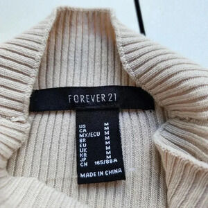 FOREVER 21 Women's Ribbed Textured Cutout Midi Dress Beige Pullover Sz M