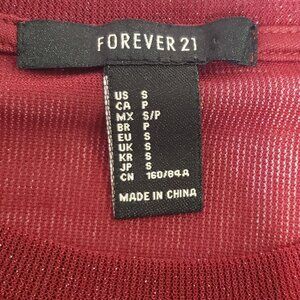 FOREVER 21 Women’s Size Small Mesh Crop Top Red Wine & Gold Shimmer Long Sleeve