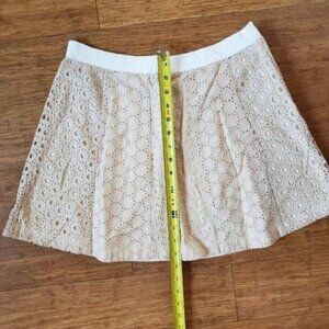 FOREVER 21 Womens Skirt Cream Eyelet Knit Short Mini A-line Lined Small