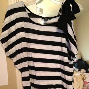 Stripped top. Sized L but I liked it baggy on me. Bow on top left corner. Worn but still good condition.