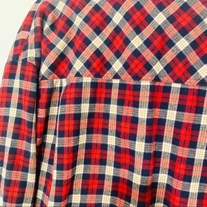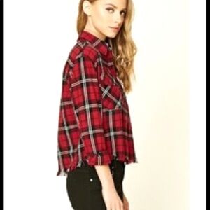 FOREVER 21 fringe flannel red plaid shirt women's size L