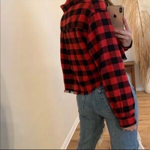 Super cute flannel crop shirt with fringe hem.