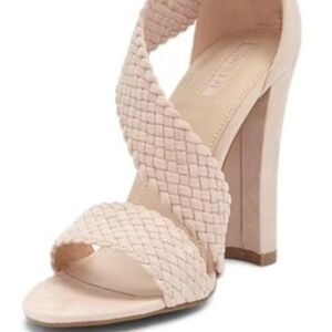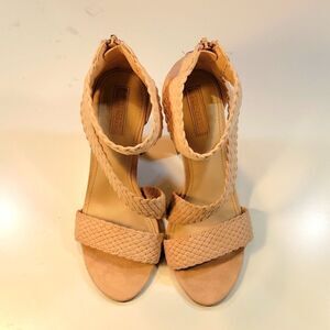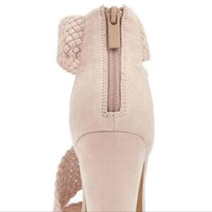 BRAND NEW FOREVER 21 FAUX SUEDE STRAPPY HIGH HEEL OPEN TOE ANKLE STRAP WOMEN"S SANDAL SIZE 6.5 COLOR CREAM BASKETWEAVE DESIGN BLOCK HEEL AND A BACK ZIP CLOSURE PADDED INSOLE TEXTURES OUTSOLE-100 POLYESTER-LINING 100% POLYURETHANE-OUTSOLE 100%POLYVINYL CHLORIDE HEEL HEIGHT MEASUREMENTS 5"INCHES THIS ITEMS IS BRAND NEW WITHOUT TAG CHECK THE PICTURES