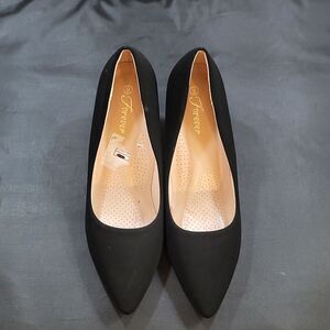 FOREVER BLOCK HEEL POINTED TOE SLIP-ON PUMP SIZE 9 COLOR BLACK The classic pump is subtly updated with a softer pointed toe and contemporary drop heel, by way of our style , this block heel pump is a modern complement to your go-to wardrobe. Dress it up for a special occasion or wear it to the office.Pointed-toe Soft Lining Sole Flexible & Anti-slip Rubber Outsole heel height measurements approximately 35 mm/1.4'' Block Heel THIS ITEMS IS PRE-OWNED EXCELLENT CONDITION WITH ONLY LIGHT SIGNS OF WEAR IF ANY CHECK THE PICTURES(FYI THE PICTURES IS JUST A MODEL TO SHOW WHAT THE SHOE LOOK ON CHECK THE PICTURES)