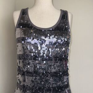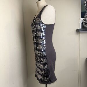 FOREVER Sequin Sleeveless Ribbed Cotton Gray Stretchy Tank Dress Size Medium
