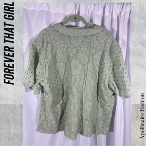 FOREVER THAT GIRL EYELET BLOUSE BUTTON DOWN IN FERN SIZE 3X NWT