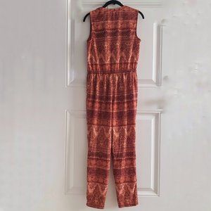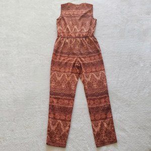 FOREVER XXI Boho Sleeveless V Neck Skinny Leg Polyester Rustic Orange Jumpsuit Size S