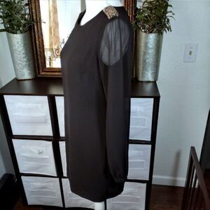 FOREVER 21 BLACK BEADED SHOULDERS SHIRT DRESS SZ.S EUC. GORGEOUS DRESS IN EXCELLENT USED CONDITION.