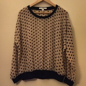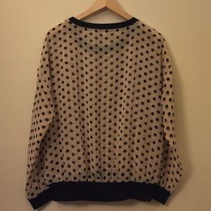 Sheer nude w/ black polka dots • Cut like a sweatshirt • Elastic ribbing around collar, wrists, & waist • NWOT