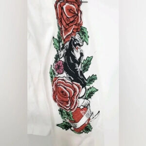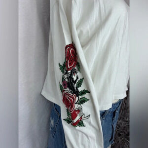 FOREVER21 Cropped Embroidered Roses Long Sleeve Cotton Shirt Size Large