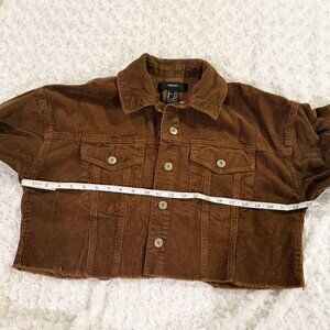 FOREVER21 Jacket Womens M Corduroy Frayed Cropped Button Front Brown