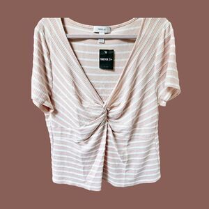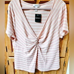FOREVER21 Plus Size Pretty Short Sleeve Stipped Top.