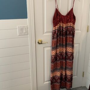 FOREVER21+ SIZE 2X SPAGHETTI STRAP DARK RED MULTI-COLOR AZTEC MAXI DRESS