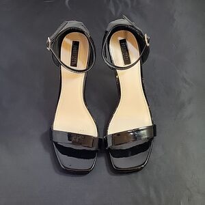 FOREVER 21 SQUARE TOE ADJUSTABLE BUCKLE ANKLE STRAP HIGH HEEL STILETTOS PUMP SIZE 9 COLOR GLOSSY BLACK MADE WITH ALL MAN MADE MATERIALS THIS HEEL HEIGHT MEASUREMENTS APPROX 4"INCHED THIS ITEMS IS PRE-OWNED EXCELLENT CONDITION WITH ONLY LIGHT SIGNS OF WEAR IF ANY CHECK THE PICTURES