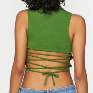 FOREVER 21 Cruz Lace Up Graphic Tank Top Green Medium