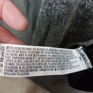 Materials: 55% Nylon, 25% Polyester, 13% Metallic, 7% Spandex