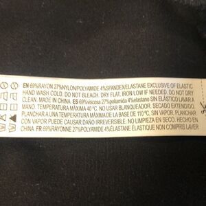 Fabric: 69% rayon, 27% nylon/polyamide, 4% spandex. Stretchy sturdy material.