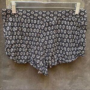 FOREVER 21 BLACK & WHITE PATTERNED DRAWSTRING WAIST SHORTS SIZE L