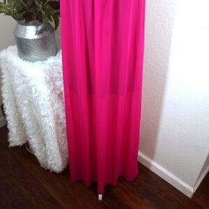 FOREVER 21 FUCHSIA MAXI DRESS SZ.M EUC. GORGEOUS DRESS IN EXCELLENT USED CONDITION. HAS LINING TO ABOUT KNEE LENGTH. A FEW SPOTS ON THE BACK OF DRESS AS SEEN IN PICS #5&6. BELT NOT INCLUDED.