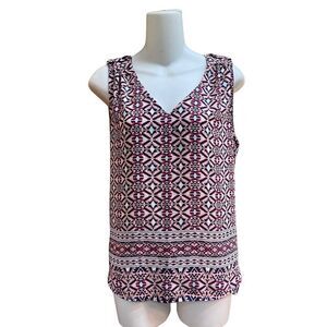 FOREVER 21 GEOMETRIC PRINT SLEEVELESS V-NECK TUNIC TOP SIZE MEDIUM
