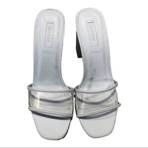 Forever 21 Slides, black heels, clear over the toes/top of foot, size 7.5