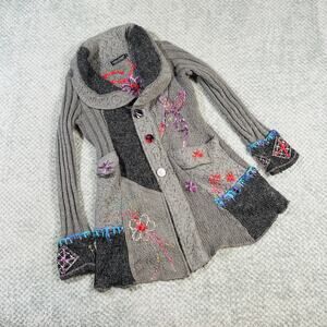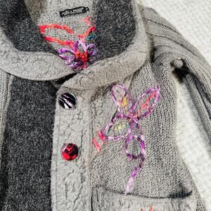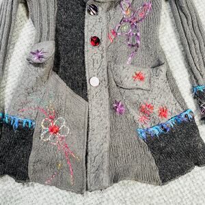 FORLA PARIS Beautiful Boho Floral Colorful Embroidered Chunky Knit Cardigan Sweater Lagenlook France S Boho Wool Blend Gray