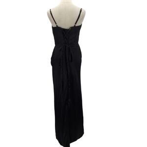 FORMAL 8 M black satin cowl neck ruched lace up party prom maxi dress NEW B112
