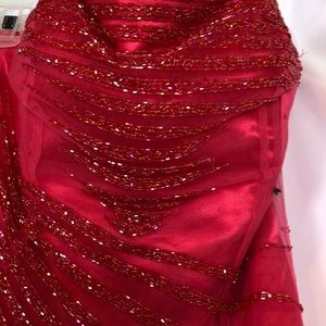 Brand new never worn dress can be worn either strapless or straps are included and can be attached. Myriad of iridescent rhinestones and hot pink beads cascading in thin streams adds a beautiful flow to this gorgeous gown. The zipper needs replacing. Bought this from Cache for a big Hollywood event and didn’t have time to fix the zipper so it’s still in the original bag.