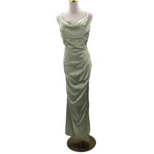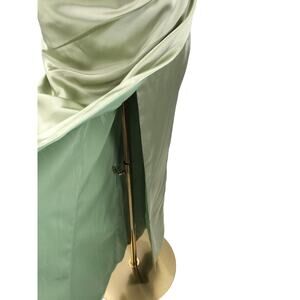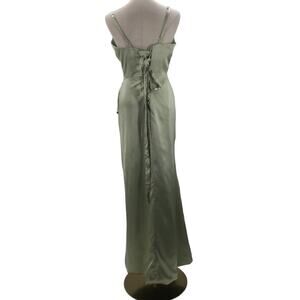FORMAL PARTY SZ 12 L Green Satin Cow Lace Up Corset Draped Maxi Dress NEW B125