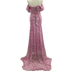 FORMAL SZ 0 XS pink sequin off shoulder maxi mermaid prom maxi dress NEW B134