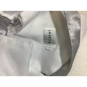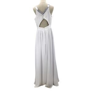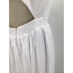 FORMAL SZ 12 L White Halter Cutout Pleated Bridal Party Maxi Dress NWT B42 flaw