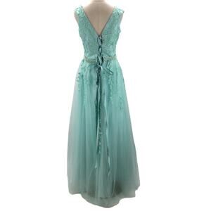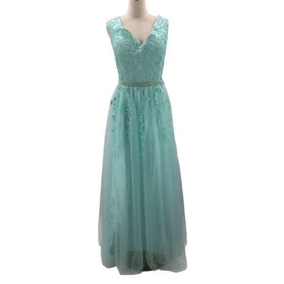 FORMAL SZ 16W blue plus tulle embroidered beaded maxi party prom dress NEW B93
