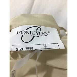 FORMAL SZ 4 S Champagne Satin Lace up Backless Party Maxi Dress NEW B148