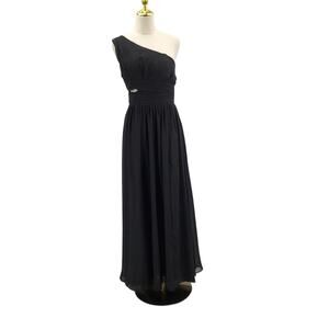 FORMAL SZ S black pleated asymmetrical cutout maxi party dress NEW B129