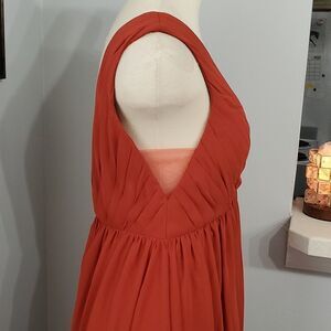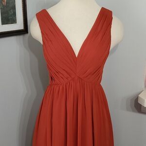 FORMAL gown, never worn. Beautiful rust color. Size 2. Empire waist. V n…