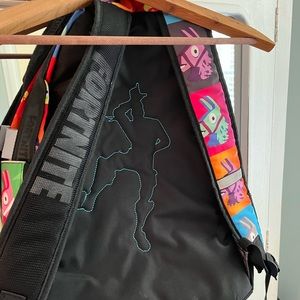 Fortnite backpack. Well made and sturdy full size backpack. Has a couple small barely noticeable marks, as it has been used. But it is in excellent shape otherwise, has been washed and has a lot of use left in it!