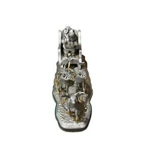 The FORT Pewter Christmas Classics "Santa's On His Way" #1190/5000 vintage holiday collectible is a beautifully crafted piece made of pewter. Handmade in the United States, this ornament captures the essence of the holiday season with its classic Christmas theme. Perfect for collectors or those looking to add a touch of nostalgia to their holiday decor, this limited edition piece is a charming reminder of festive traditions.