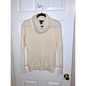 FORTE Womens IVORY Cashmere Open Knit Cowl Neck Pullover Sweater Sz M