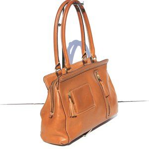 FORTH & TOWNE Leather Satchel Saddle Brown w/Saddle Stitching & Tassels