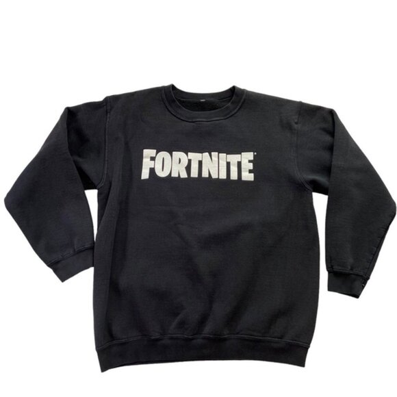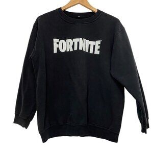 FORTNITE graphic sweatshirt fleece black white scoop neck long sleeves medium