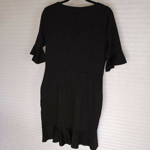 FORTRIC Womens Black Dress Bell Sleeves Ruffled Hem Office Work Casual Size XL