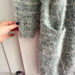 FORTUNE & IVY Samirah Hooded Cardigan features features an open front, two front pockets, and hood. Super cozy and fuzzy. Light blue color. Preowned, but still in excellent condition. Only worn once!