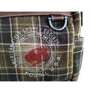 FOSSIL Alpine Brown Plaid Wool Messenger Laptop Crossbody Bag