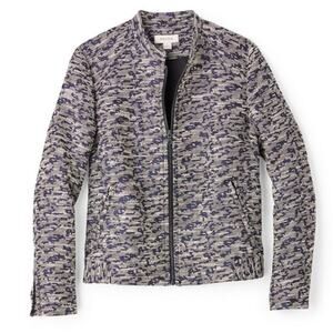 FOSSIL Arlene Jacket Blue Multi Leopard Print Metallic Full Zip Size Medium